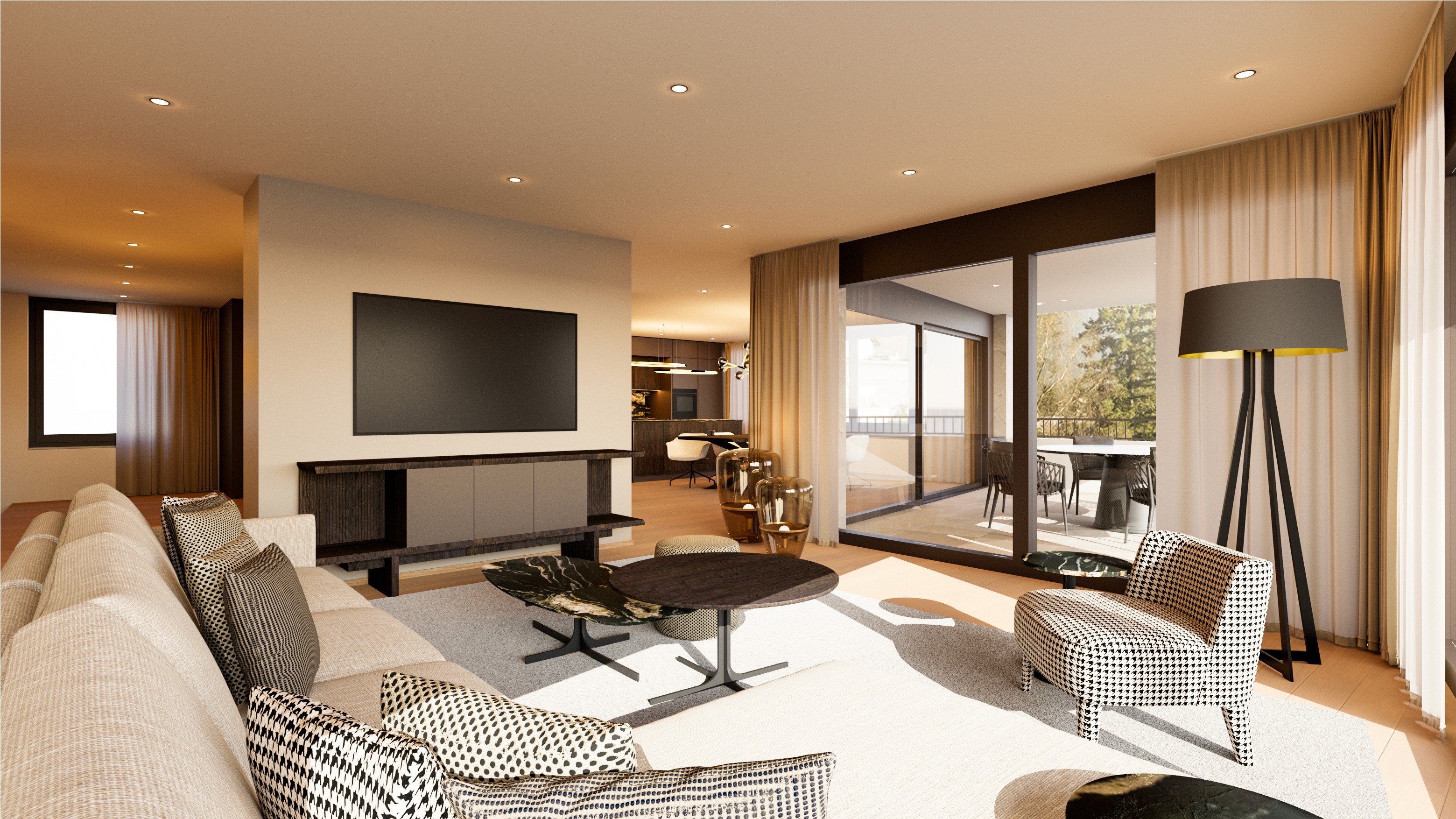 Durchdachte Grundrisse, grosse Fensterfronten und die Süd-West-Ausrichtung schaffen ein helles, offenes Raumgefühl.